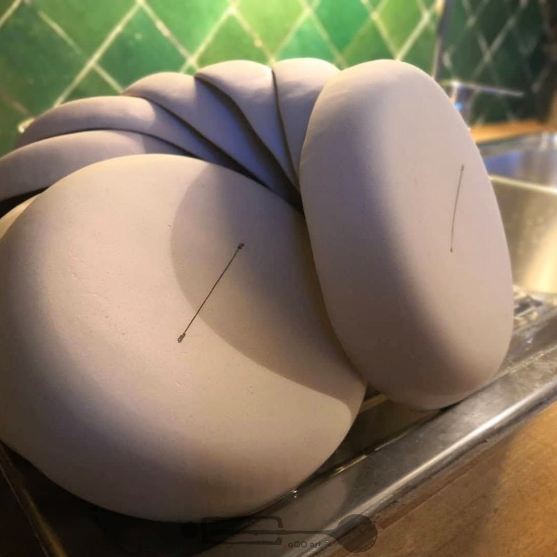 Estampage et façonnage à la main - Cuisson à 1260°C dans un four céramique au gaz auto-construit.